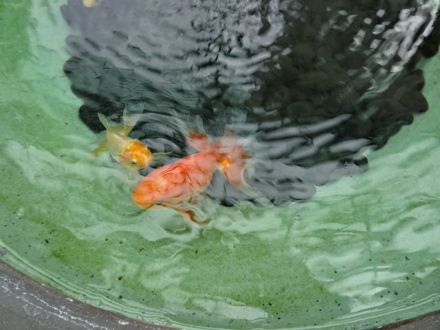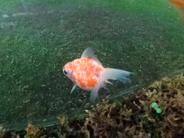 水槽内には綺麗に苔が生えていてそれを金魚がついばんでいました。